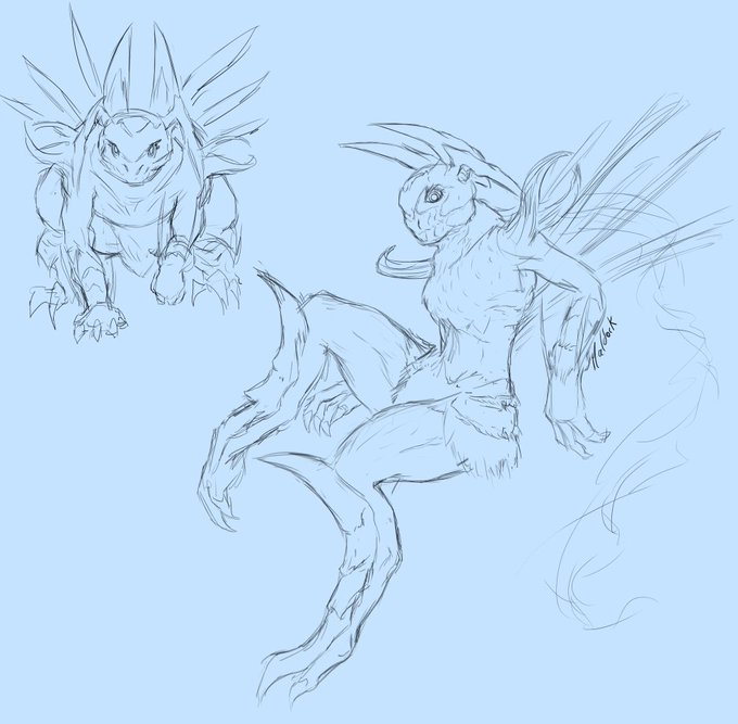 Me gustó el moveset de #Kuahtlimon, un digimon original de una historia fanmade que está en su recta final, así que hice un boceto rápido de cómo interpreto uno de ellos.