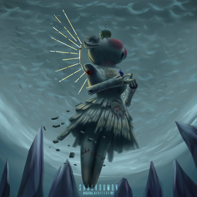 @migenku @DMuchomon @Pastelmon_art Un shakkoumon que hice lo dibujé maso pensando en algo similar a lo que dices del angemon xD
