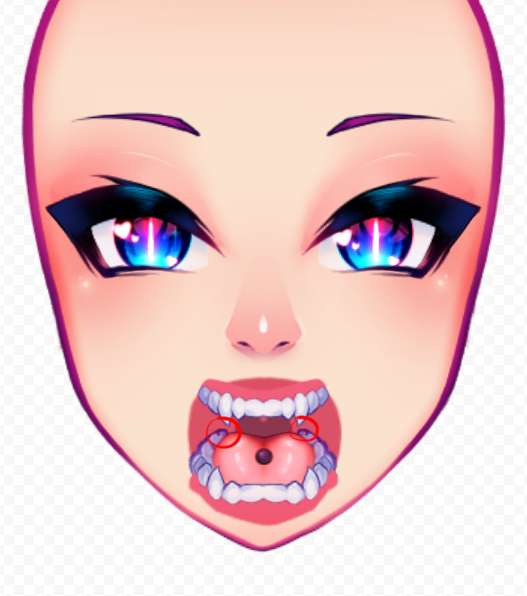 The Tongue, Tongue Ring and Bottom lip's shines are separated, but I don't think that will be necessary, it's mainly for physics.