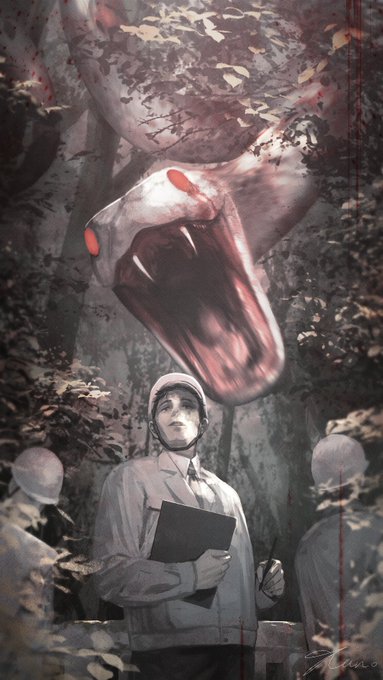 古くから人に寄り添い人を愛し愛された大蛇の神。 やがて人に忘れ去られ、放棄された彼の白銀の鱗と慈愛に満ちた金眼は、黒く淀み緋く濡れてしまった。 ホラーがお好きな方に楽しんでいただけますと幸いです。 ←現在 過去→