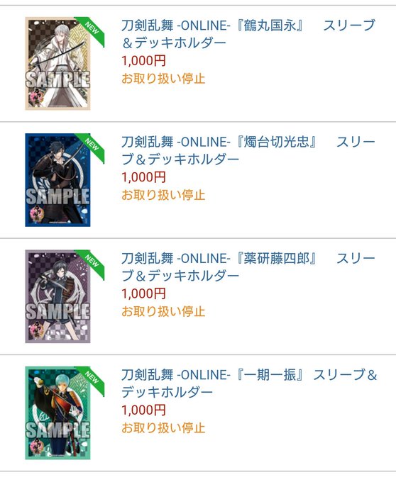 ブシロードECSHOP様にて限定通販が開始!イベント会場限定で販売された戦闘立ち絵ver.の三日月宗近、小狐丸等のスリーブや夏コミ限定だった鶴丸国永、一期一振、燭台切光忠、薬研藤四郎のスリーブをゲット出来るチャンス!! #刀剣乱舞 https://t.co/ZTD4s2W29p