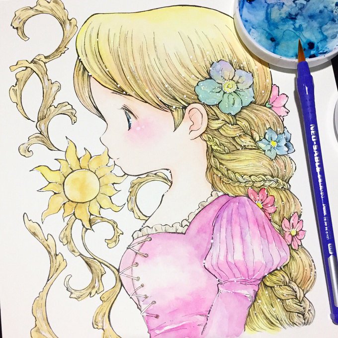 ぬりえ企画ありがとうございました!感謝の気持ちを込めて、今回私が塗ったラプンツェルをポストカードにしてネットプリントにてお届けします🌸 セブンイレブンネットプリント🌸予約番号:16159624 /一枚60円。コピー機よりハガキサイズでプリントされます。7月8日23時59分まで✨