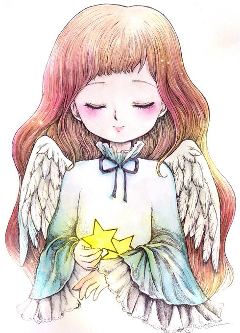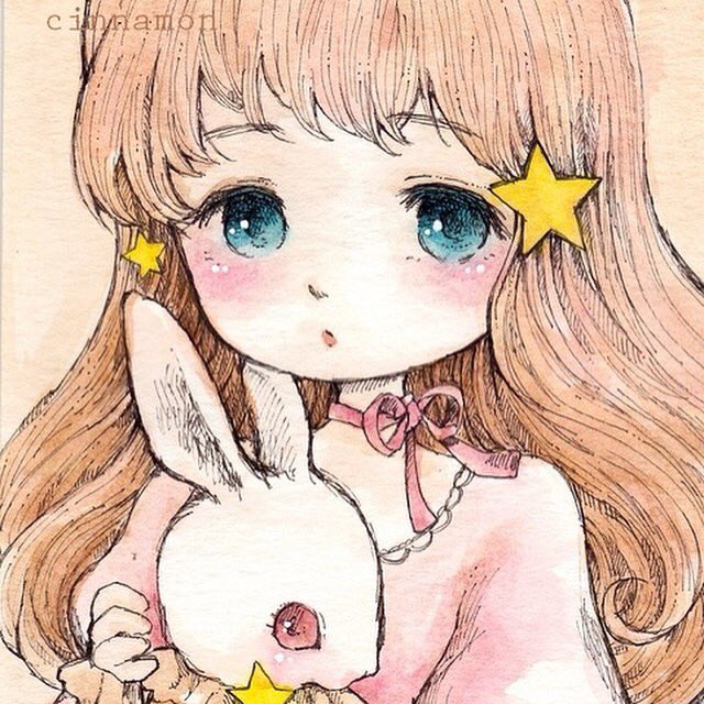 線画と水彩で儚く優しい女の子をテーマに描いています。