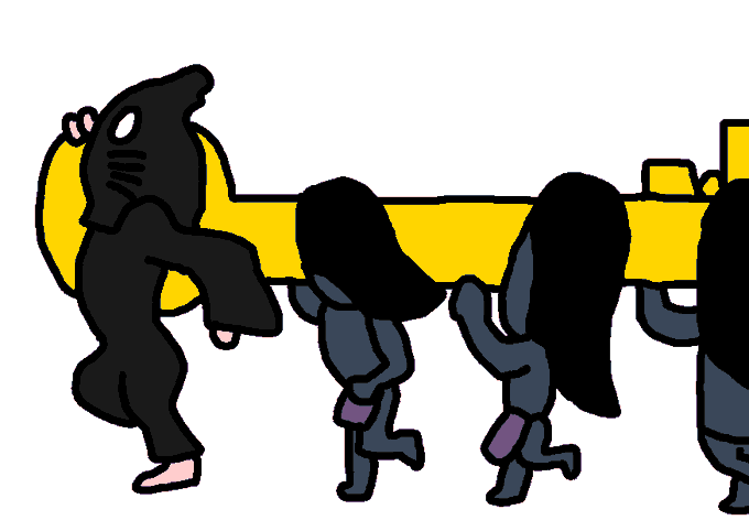 巨大な鍵を運ぶねずみ男達