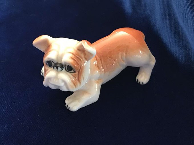 A tiny 1940’s bulldog porcelain figurine. Very cute design! For sale at https://t.co/92BjKTFNLm. #bulldog #vintage #VintageDog #dog #DogsofTwitter #1940sVintage
