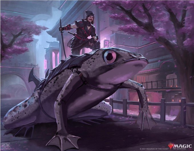 A commission I did for an alter of Tatsunari, Toad Rider into a person and their frog! This was a fun but challenging one, especially with having to paint over the background (original art by https://t.co/tKw3aY8lUG)