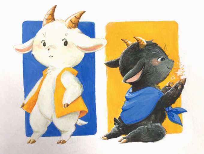 絵本「あさとよる」 2年と8ヶ月越しに絵と表紙、ロゴが完成しました。(1枚目が表紙) 最初の頃と設定やら、あさとよるの描き方もだいぶ変わってます。 完成は来年中!(汗)