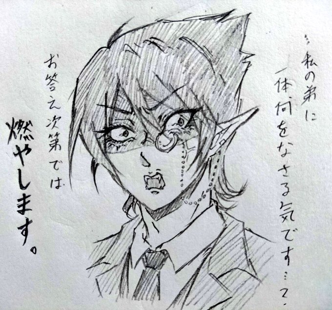前に描いた口大きく開けたディミトリエが迫力無さすぎだったので、今度はどんな顔に描いてやろうかなとか思ってる今。 不穏な顔も過去に描いたけど、牙を剥くって感じではなかったからなぁー