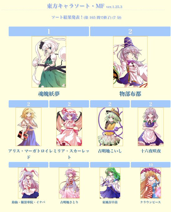 東方キャラソート結果!