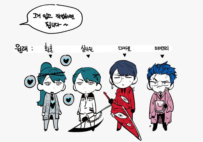 제이크-코즈모(feat.징계팀 삼인방(3, 4짤 양 옆) 배틀혐관(코즈모>제이크)일방집착 둘 다 어지간한 해결사/사무소에 몸 담았다 나와서 자존심도 힘도 쎈 편