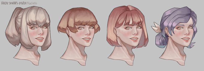 some hair studies to practise simple shapes ( ͒ ́ඉ .̫ ඉ ̀ ͒) kinda skewered the last head reeeee