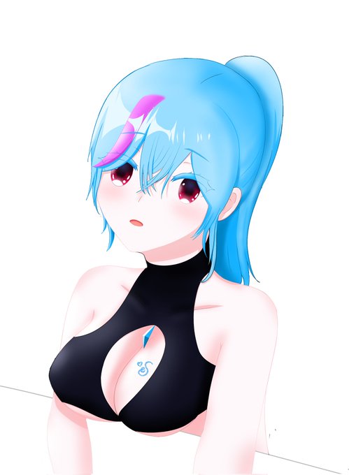 자캐 그림 수영복+포니테일! 반무테 첫 시도라 아직 많이 어색해요ㅜㅜ