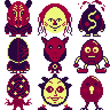 Some candy colored mutant whuzoos for your timeline! #pixelart #ドット絵 #creaturedesign