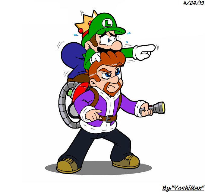 She wanted me to draw Luigi, and her FC, King Richard, together. Ya know..... chillin'....... tho, the only thing with chills around here is Luigi's spine. :v You've taken on ghosts before...... Grow a pair, and get in there! :b