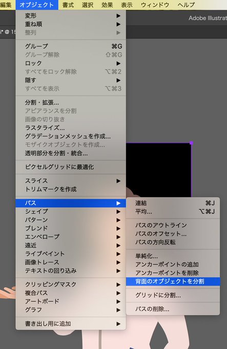 人物のバストアップの作り方 1,切りたいサイズのパスを作成 2,最背面において選択 2,オブジェクト>パス>背面のオブジェクトを分割 3,白い矢印でいらないパスを選択削除 これで完成。 線はアウトライン化してから。 グラデは数値変わるのでパスファインダで。 #イラレ豆知識 #カミキノート