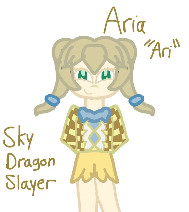 Here is my FTO Oc Aria! She is a third gen sky dragon slayer who is shy with new people but is very outgoing with her friends. When in her dragon form, Aria can be very sassy and aggressive. But it takes an intense anger or sadness to get her to that point.