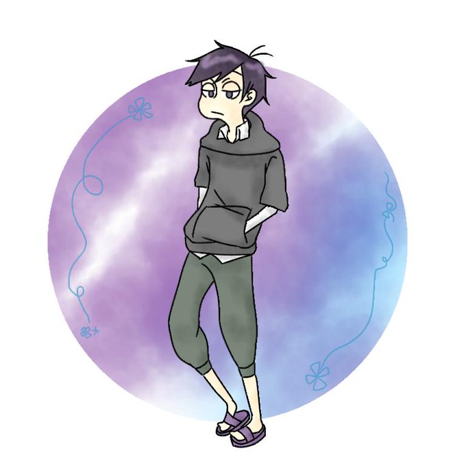 顔の輪郭を丸くしてみました 背景の紫に若干青が入ってるのは色松クラスタの性