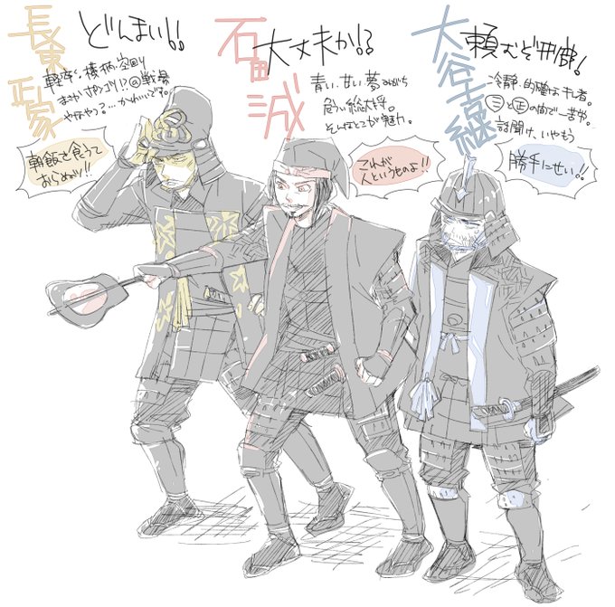 のぼうの城 戦隊カラーの関白軍3将。