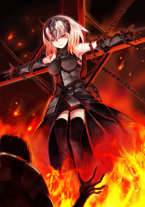 ジャンヌオルタ最後まで出なかったので供養に描いたやつ、、ジルがジャンヌオルタ召喚したみたいなかんじで、、ぐおおおああああああああ! #fate #fateGO
