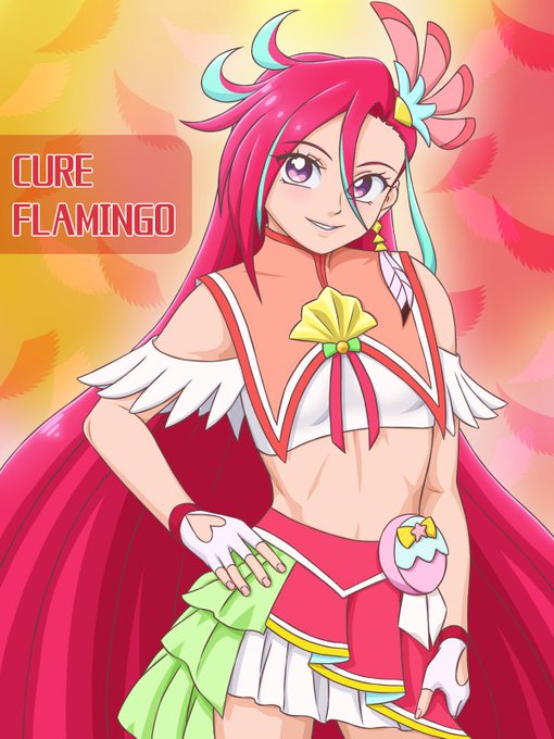 キュアフラミンゴ描きました。 腹筋をたくましく描きそうになったりなど直す作業も多かったですが、思ってたよりいい感じになってよかったです #トロプリ #プリキュア #キュアフラミンゴ
