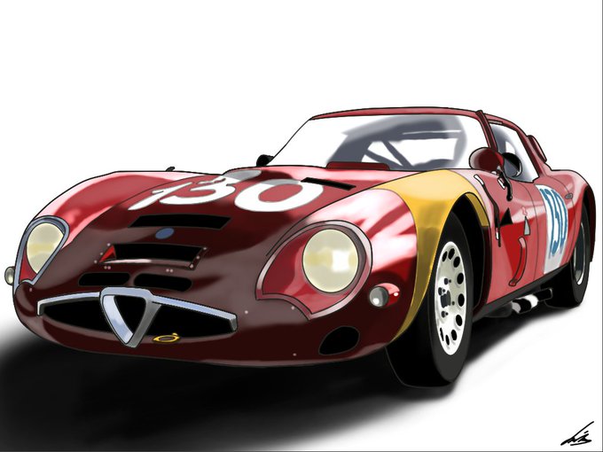 初参加です! お題が1990年までのレーシングカーということで「アルファロメオ ジュリア TZ2」を描きました! #タコ車ウィクドロ大会