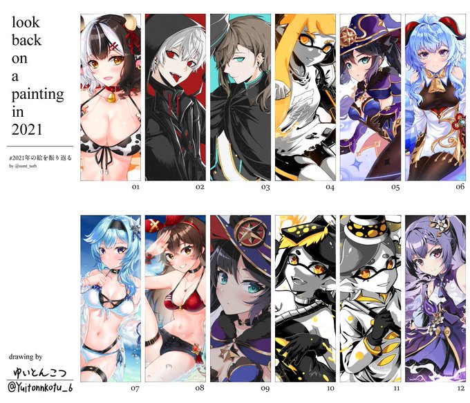 #2021年の絵を振り返る テンプレお借りしました! 目標にしていた1か月に1枚達成できました!絵も成長できたと思いますし自分の絵柄を見つけられた気がします!来年はもっと成長できるように描きまくります!!