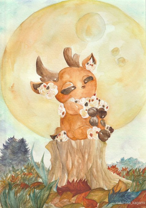 #私の個性はきっと誰かにささる 羽根と鱗が好きな水彩厚塗り絵描きです お菓子の鹿、お菓鹿シリーズも描いてますよ
