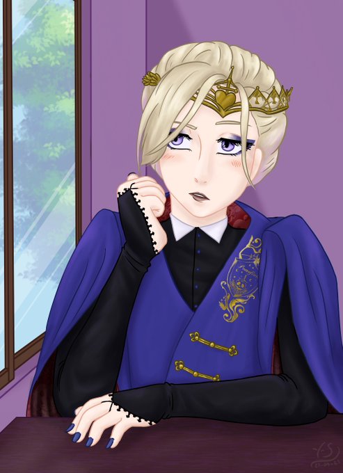 A drawing of my OC Dalia with an imagined Heartslabyul uniform for her~ She actually goes to my friend's fanschool, but I indulged in thinking of an AU where she's at NRC~