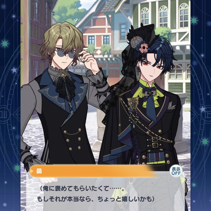 機械と冒険譚を感じる不思議な衣装で飛行士のバラッドを思い出しました。あの時は西と中央だったので南と東嬉しいな。シノとミチル、シノとフィガロのやり取りも好きなので絡みがあったら嬉しいです。