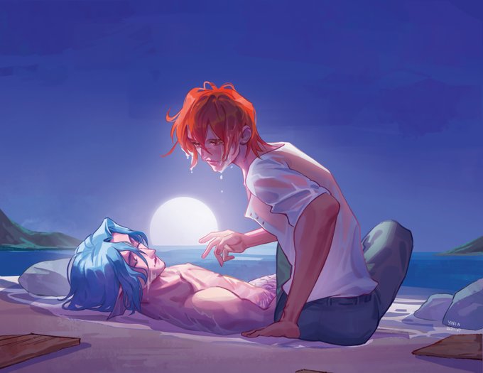 I finally get to draw reki and Langa in my siren AU #SK8THEINFINITY #renga