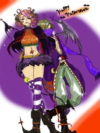 ハッピーハロウィン! ハロウィン大好きだから描いてみた 一応、片翼の姉弟でザイルさんとキリ君と名付けてみた。。。
