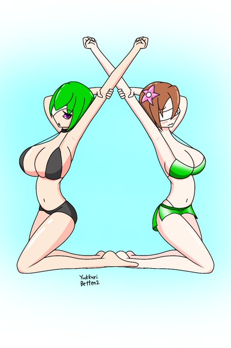 暑いんで水着を着たうちの子たち。 謎ポーズなのはしょうがない。