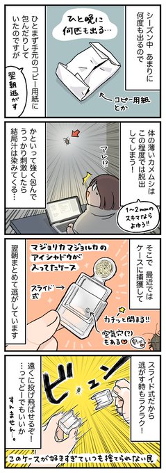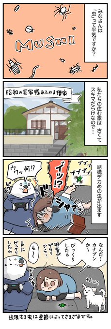 今回は、おうちの中に虫たちが出た時のお話を描きました。