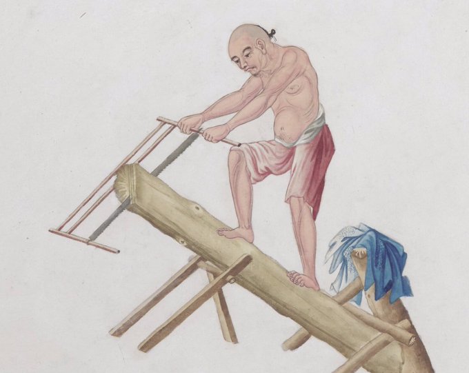 Last week I have seen the Royal Pavilion's precious Chinese wallpapers. A finding: one column of the wallpapers has a hunting scene (L) that is extremely similar to one of the wallpapers in the V&A museum, apparently sharing the same composition(R). @Saschaloske @RicardaBeatrix