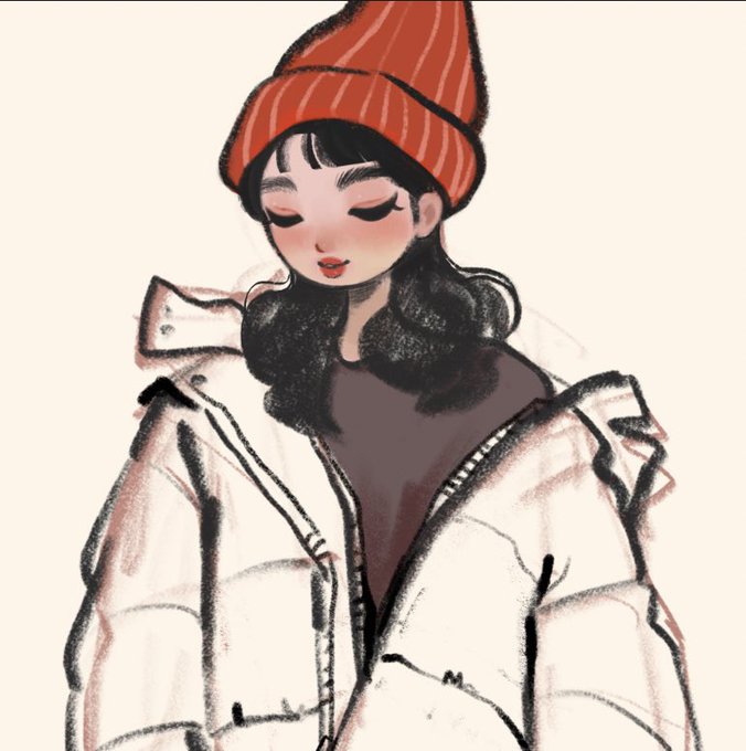 겨울 Winter 하얀패딩 꺼냈더니 아직은 땀줄줄... #illustration #girl #drawing #illust #그림러 #nft #nftart
