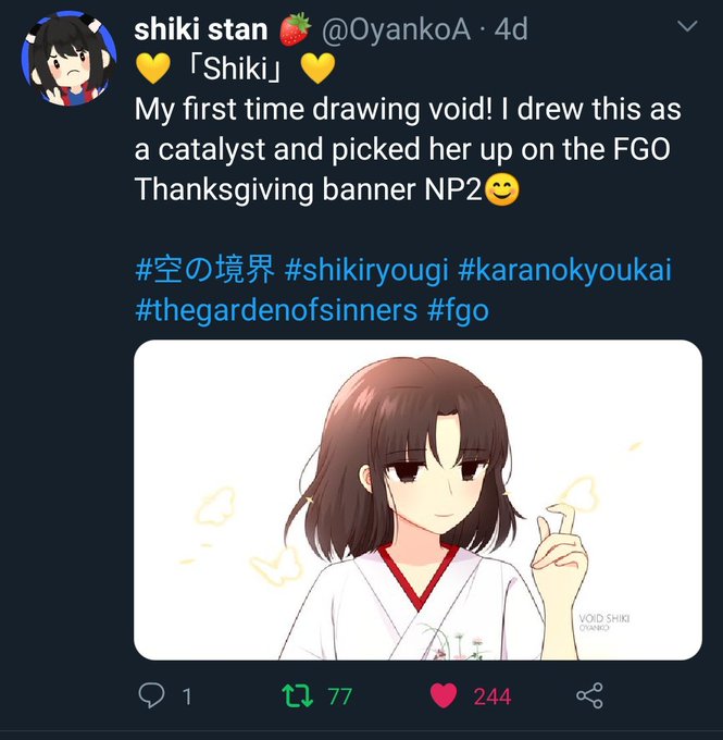 Go and follow @OyankoA they do Shiki art which is already a win in my book and it looks really nice. Any fellow Shiki artists are some of my favorite artists instantly so yeah. As a fellow Shiki artist, I want to help you out.