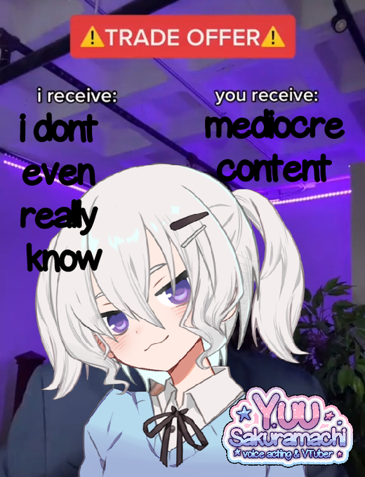 I am Yuu, voice actress and VTuber! Nice to meet you! I just got started so there isn’t much about me <.< My YT channel is linked on my profile if someone is interested!