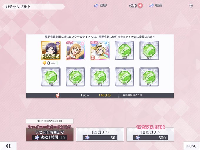 エマちゃんバースデーガチャ。 5STEP目でURが出ましたが輝きになりました。