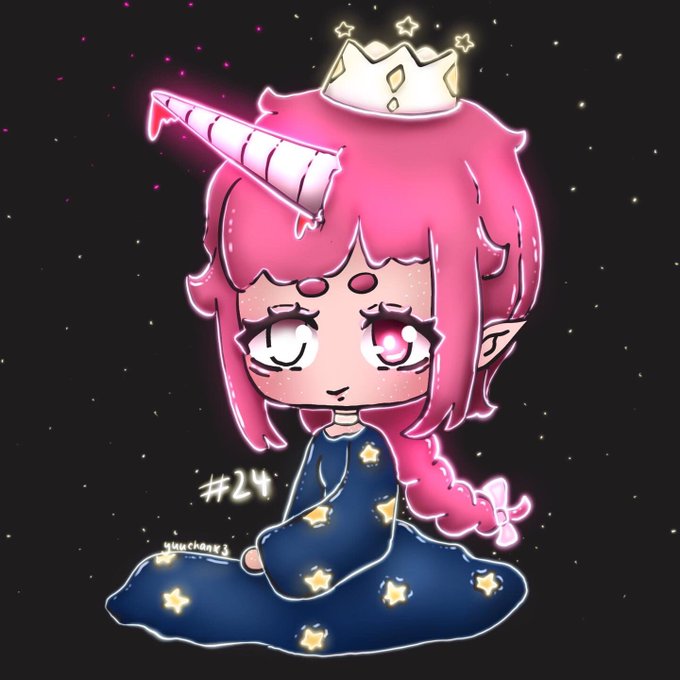 #inktober #inktober2022 #inktoberday24 #chibi #cute #creepycute #digitalart #procreate #unicorn #pinkhair #stars #glowing
