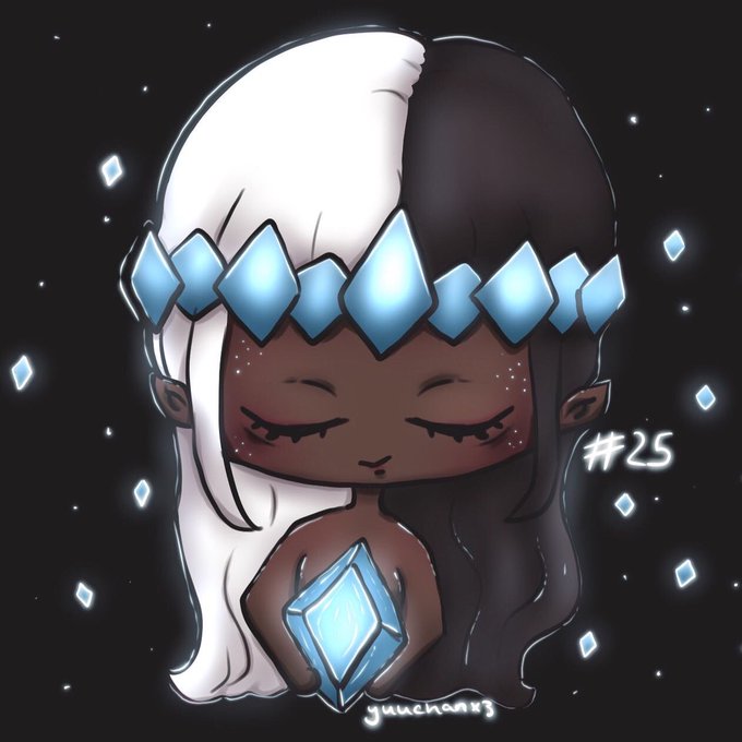 #inktober #inktober2022 #inktoberday25 #chibi #cute #creepycute #digitalart #procreate #blackwhite #bluejewel #jewel #glowing