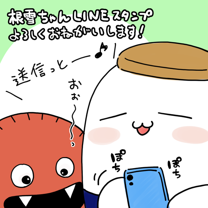 【お知らせ】 今回も根雪ちゃん1500フォロワー達成記念イラスト[https://t.co/Y8ueez5bJj] そしてさらに根雪ちゃんLINEスタンプ[https://t.co/wnfsEvSMtA]のイラストを制作しました。 どなたでも使いやすく愛されるようなスタンプを目指して描かせていただきました! (※こちらはファンアートです↓)
