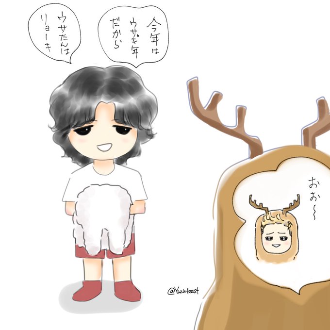 インスタで年男の意気込みを語っていたリョウキ君見たら🐰着せて上げたくなった😄遅くなっちゃったけど描きました〜😊