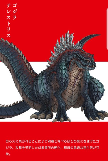 テレストリスの公式イラストかわいい(* ´ ω ` *) てかお腹のあたりとかラオシャンロンみたい #ゴジラSP