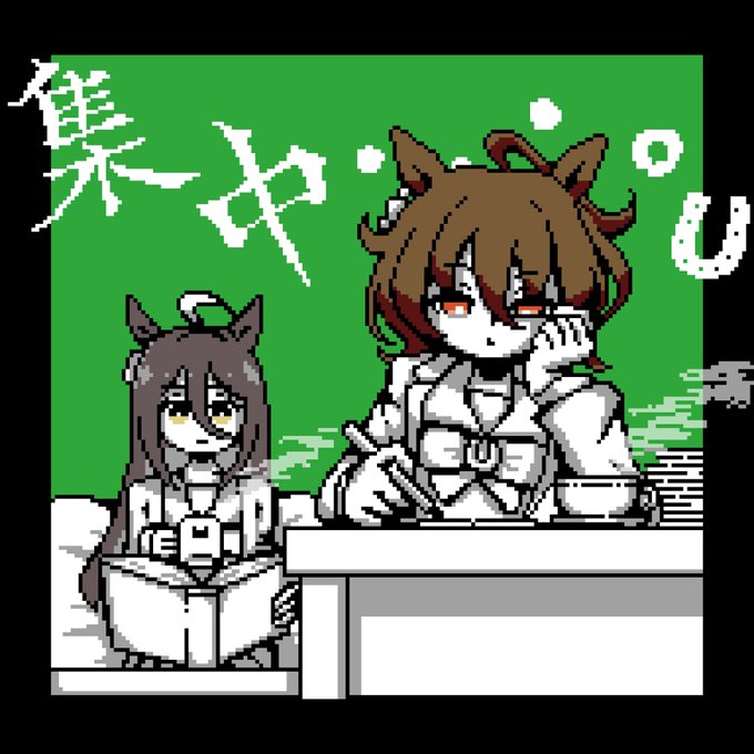 和柄財団は月面の着陸経験のあるゴルシ様から新年の挨拶をお願いしました マックイーン様はゴルシ様が勝手に連れてきたそうです 今年も和柄財団をよろしくお願いします✨🐰🐴 #ウマ娘 #ドット絵 #pixelart #ゴールドシップ