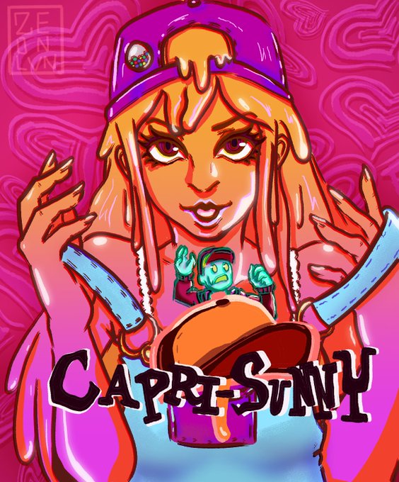 This idea had been stuck in my head for a while! Its both of @cacoethicart 's characters/models Capri Sunny and Glob Ross but as the Catheriine cover!