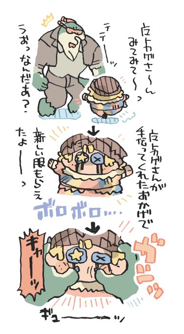 ボロ服もらったキョクゲイシ君(背景推理内容には触れてません)。