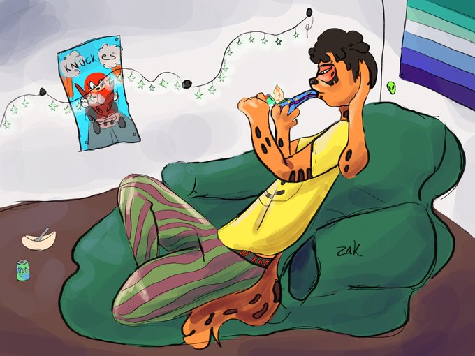 Drawing of my fursona, smokin sum weedz