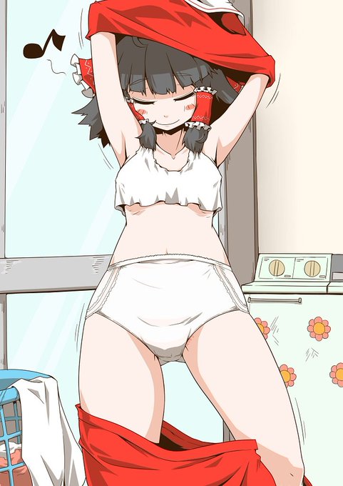「 おへそまである白パンツな霊夢さん」「古臭いパンツ(おばさんパンツ)を穿いてるところを見られちゃった霊夢さん」「着替え中の霊夢はオバサンパンツだった」「着替えの最中だった普段履きのオバサンパンツな霊夢」