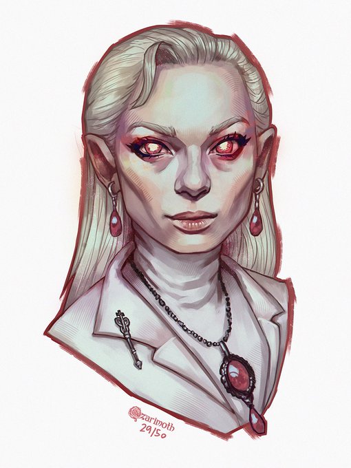 Day 28/50 - Bloodmoon ❤️ - #fantasyart #digitalartist #digitalart #portraitart #vampire #darkart #nosferatu #ArtistOnTwitter