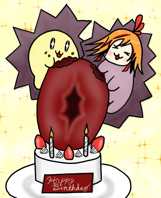 遅くなりましたがハリネズミさん 誕生日おめでとうございます ヾ(⌒(_*'ω'*)_🦔 比率がおかしい麦チョコケーキでお祝い (੭ ᐕ) #絵やんくっく